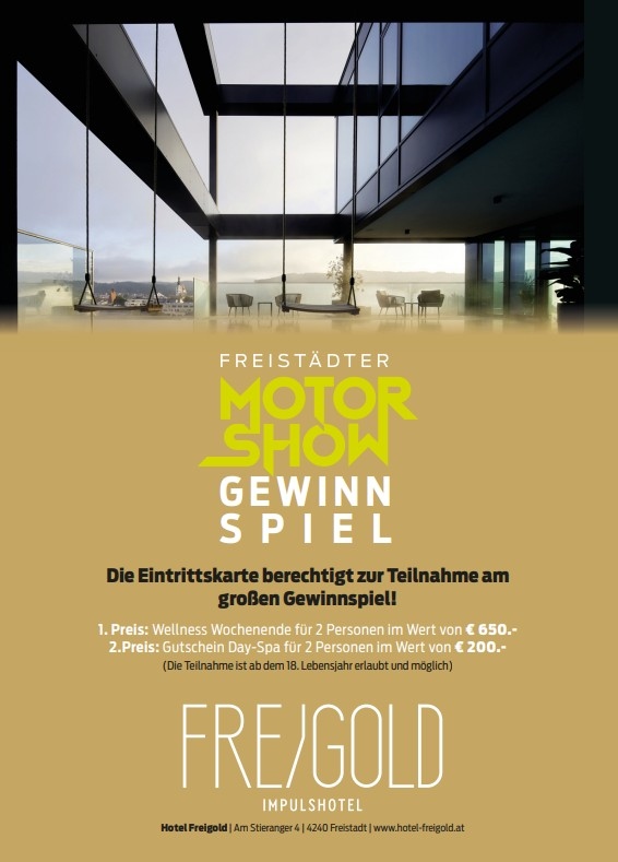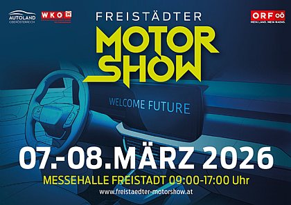 Die Freistädter Motorshow präsentiert sich für Sie ab 7.-8. März 2026 ÖFFUNUNGSZEITEN: 09:00 - 17:00 UHR EINTRITT: 15 - 17 Jahre € 5.-ab 18 Jahre € 7.-
